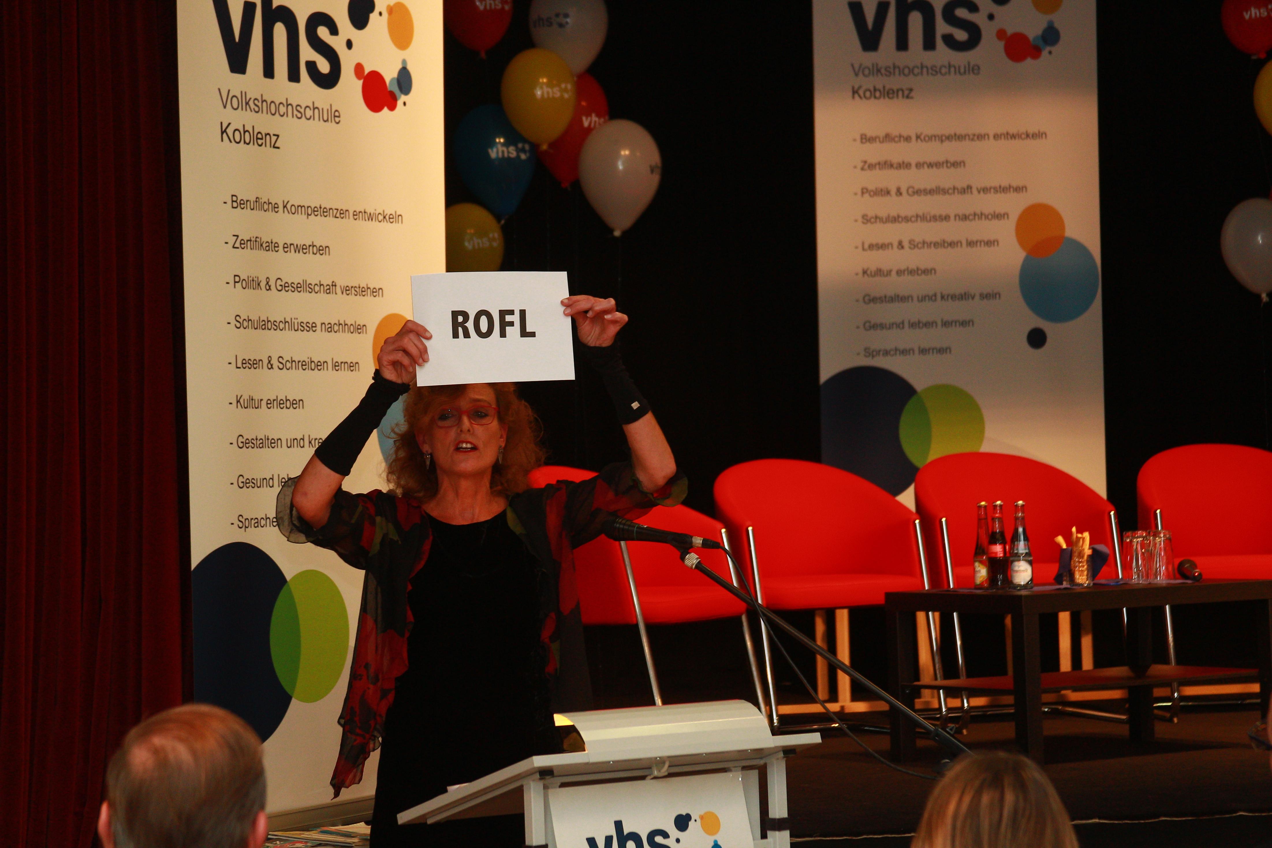 Die Volkshochschule Koblenz feierte am Freitag den 15. September in einem eindrucksvollen Festakt ihr siebzigjähriges Bestehen und bot dazu ein unterhaltsames und abwechslungsreiches Bühnenprogramm. Der Einladung folgten neben den Ehrengästen aus Politik und Kultur zahlreiche Freunde und Förderer der VHS sowie Koblenzer Bürger.