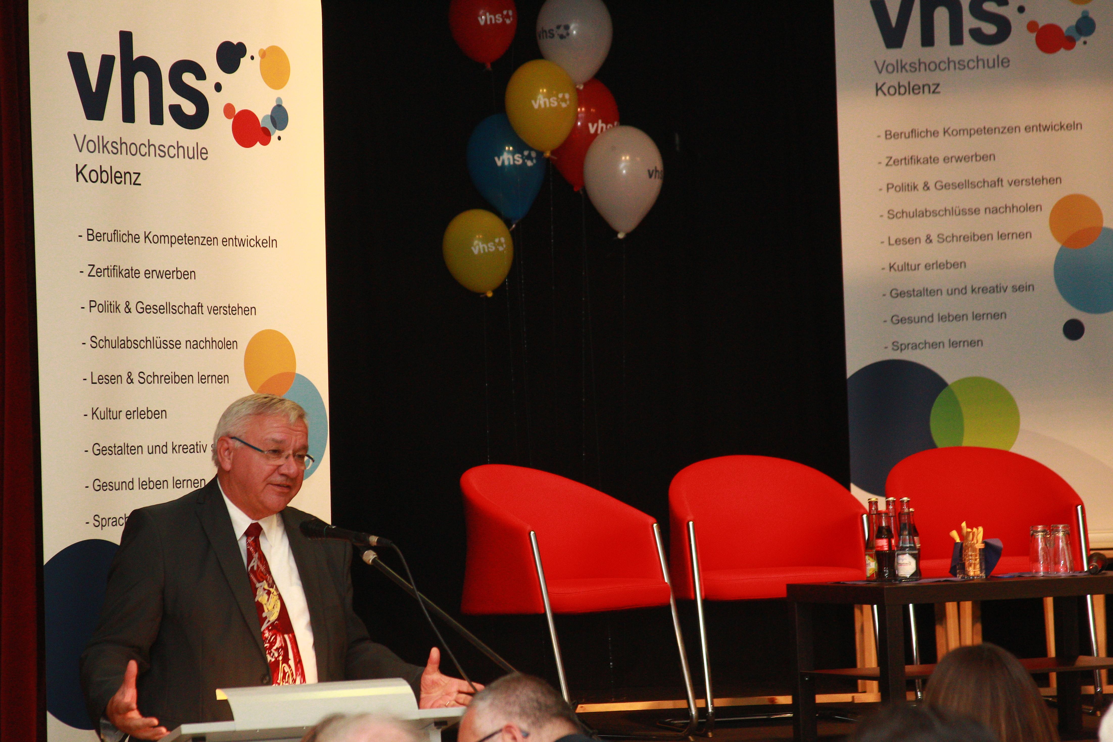Der Oberbürgermeister Prof. Dr. Hofmann-Göttig begrüßt die Gäste beim Geburtstagsfest zu 70. Jahre Volkshochschule (VHS) Koblenz