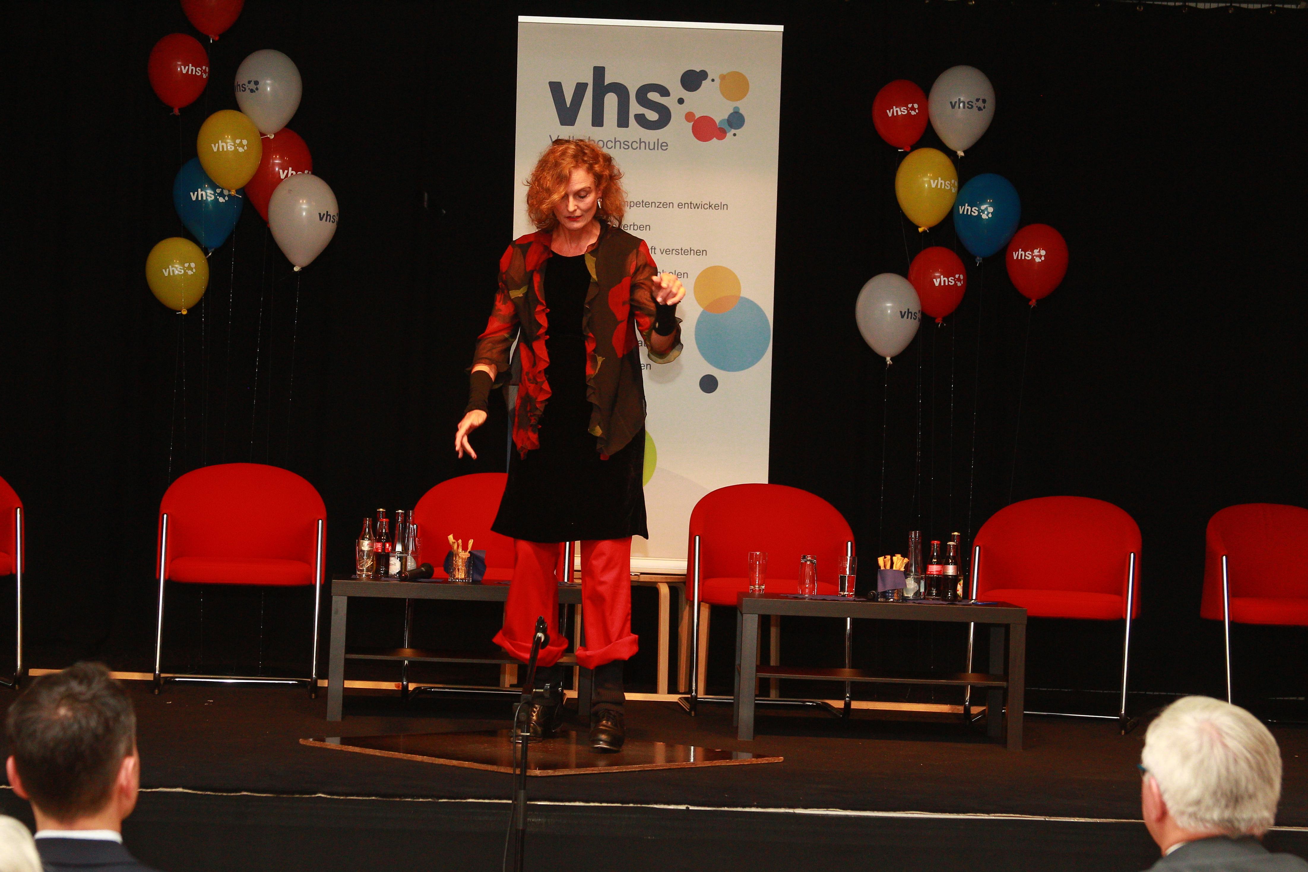 Künstlerisch umrahmt wurde der Festakt von abwechslungsreichen, humoristischen Einlagen der VHS-Dozentin, Kabarettistin und Regisseurin Babette Dörmer.